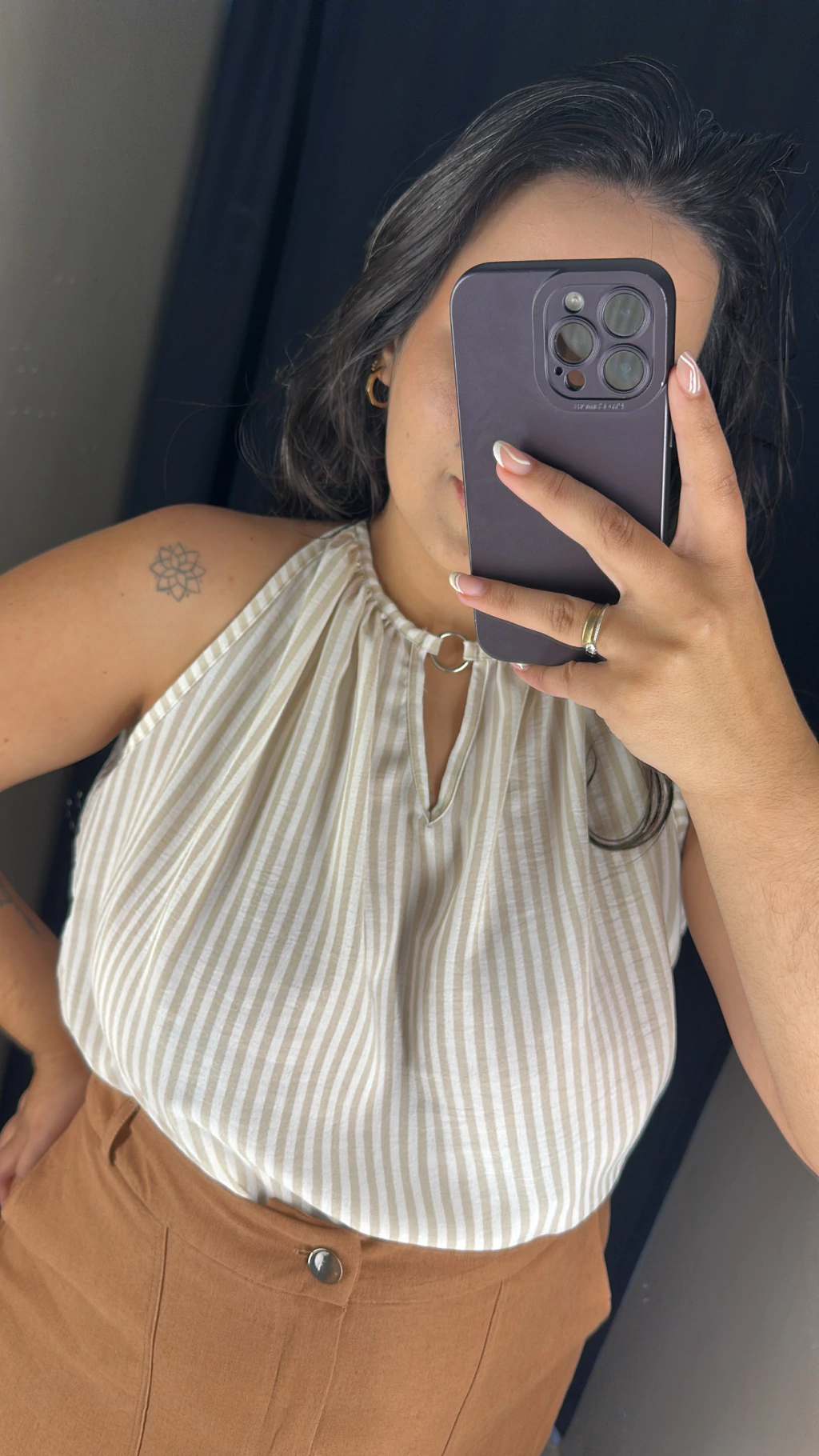 Nossa blusa Moscou é confeccionada no tecido de crepe duna, não encolhe e não amarrota. Tem o amarração na parte de trás do decote para você conseguir regular no pescoço. Está disponível em dois tamanhos, são eles:
