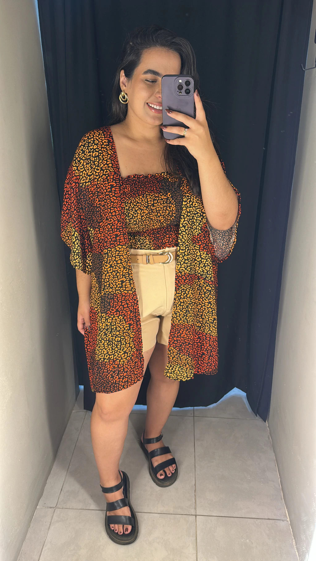 Nosso conjunto de kimono com cropped é confeccionado no tecido viscolinho pré-lavado, com taxa de encolhimento de 2%. O cropped é todo em lastex e não tem bojo, e o kimono possui abertura nas laterais.