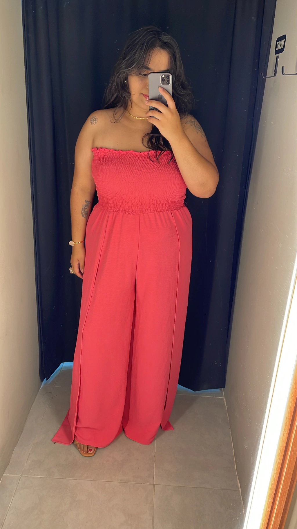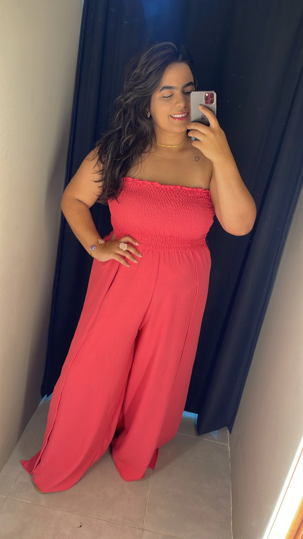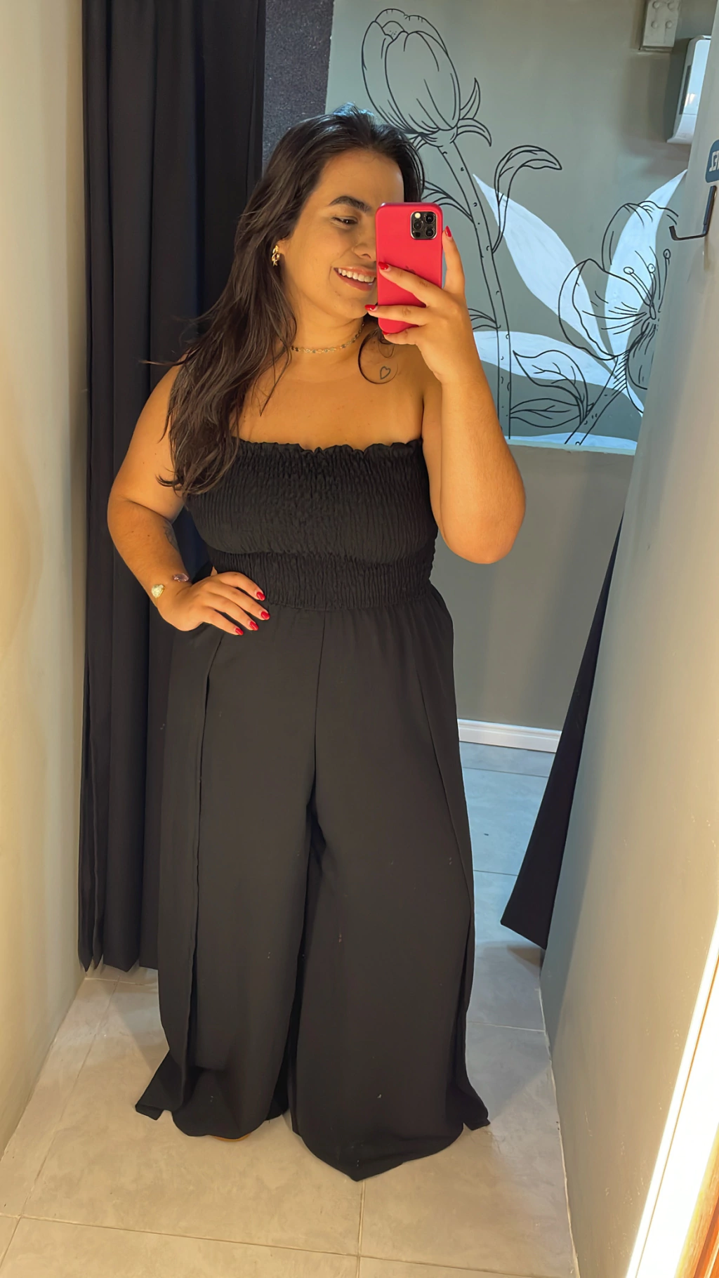 Nosso macacão Trancoso é confeccionado no tecido de crepe airflow, não encolhe e não amarrota. Tem as alças de amarração que te permitem usar a peça com sutiã, ou se caso quiser usar sem as alças é só escondê-las. Tem o detalhe de transpasse na calça mas não fica aberto, é apenas um detalhe na calça. Está disponível em três numerações, são elas: