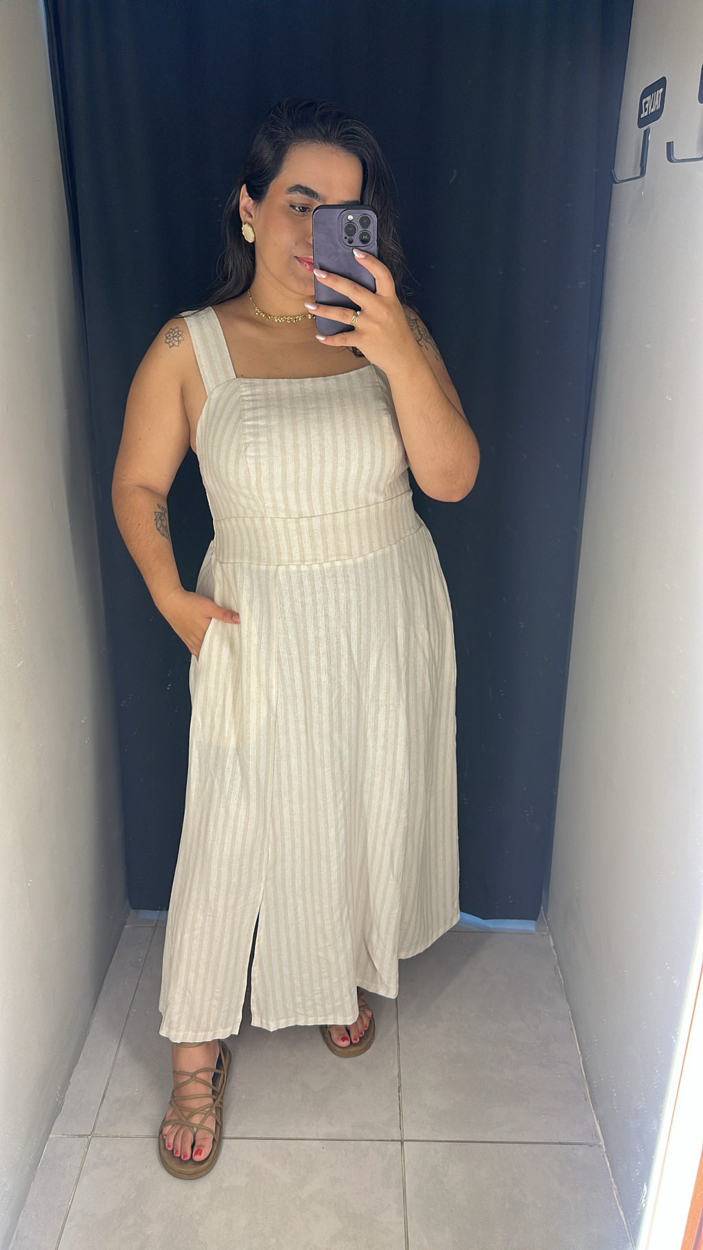 Nosso vestido Capri é confeccionado no tecido de linho, tem uma pequena porcentagem de encolhimento. Possui elástico na parte de trás para melhor adaptação ao corpo, você consegue usar com sutiã. Disponível em três tamanhos, são eles: G1(46/48) G2(50/52) e G3(54).